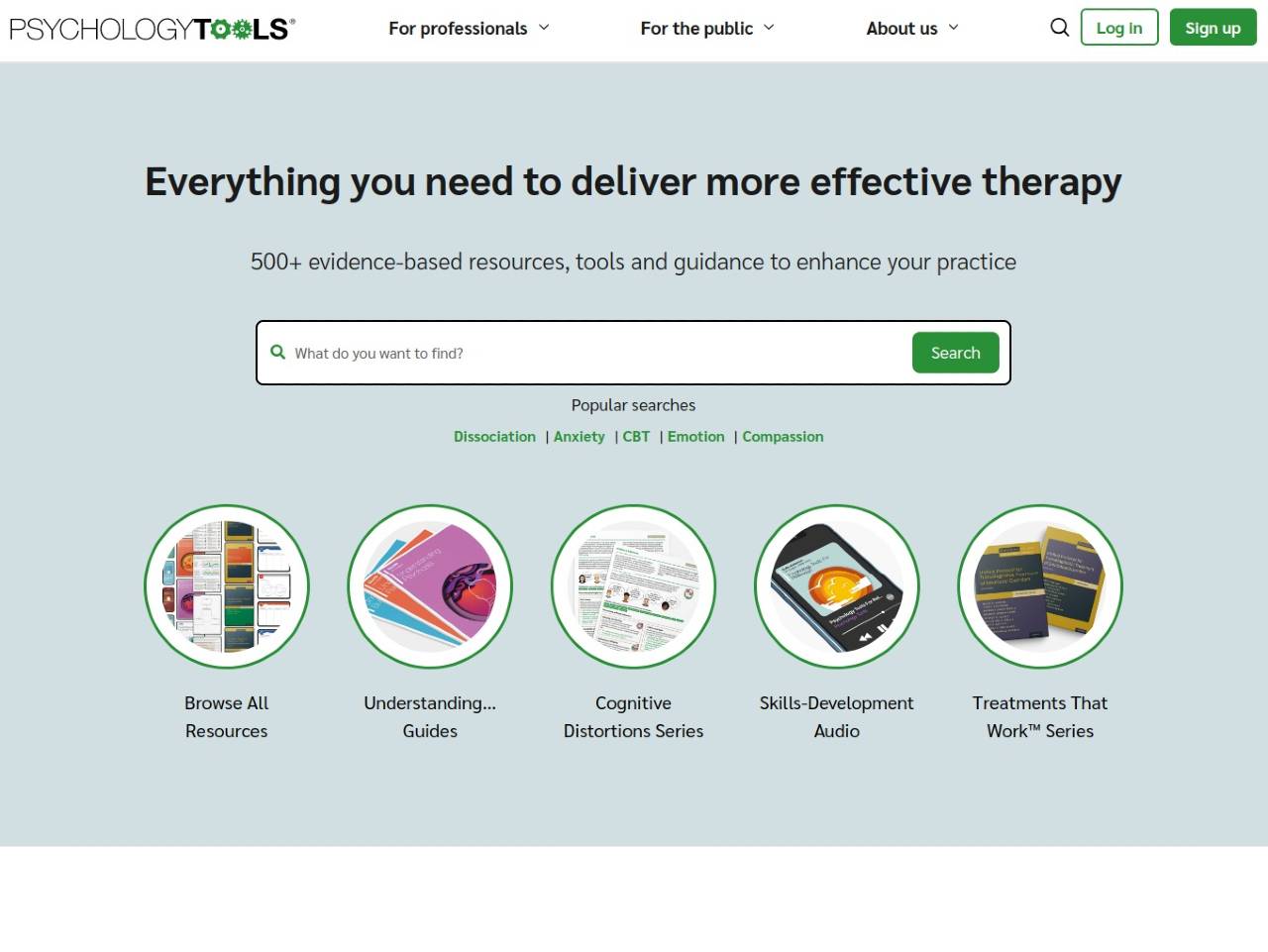 Psychology Tools is a website offering validated psychological assessment tools for professionals, students, and the public. It supports therapy delivery with evidence-based resources and provides high-quality mental health information. The site includes assessments, interventions, CBT worksheets and skills-development materials with therapist guidance and step-by-step instructions.